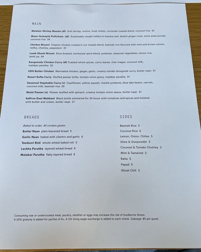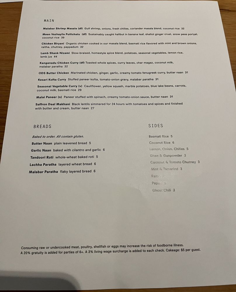 Toasted whole spices, curry leaves, char magaz, coconut milk,malabar paratha