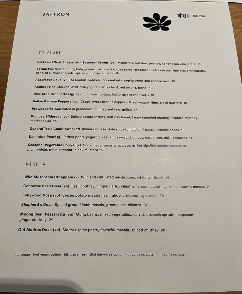 Saffron - Burlingame offers a unique upscale dining experience with creative variations of Indian cuisine. Located in downtown Burlingame, this restaurant showcases southern Indian classics with a modern twist, including dishes like Genovese basil dosa and crab croquettes that customers rave about. The ambiance is tasteful and perfect for a date night, while the service is quick and accommodating of dietary preferences. Customers highlight the exceptional flavors and variety of dishes, with favorites like the lamb shank and rose kulfi dessert. While prices may be on the higher end, the quality of the food and service justifies the cost. Overall, Saffron - Burlingame impresses with its culinary focus, coastal Indian flavors, and attention to detail in both food and atmosphere.